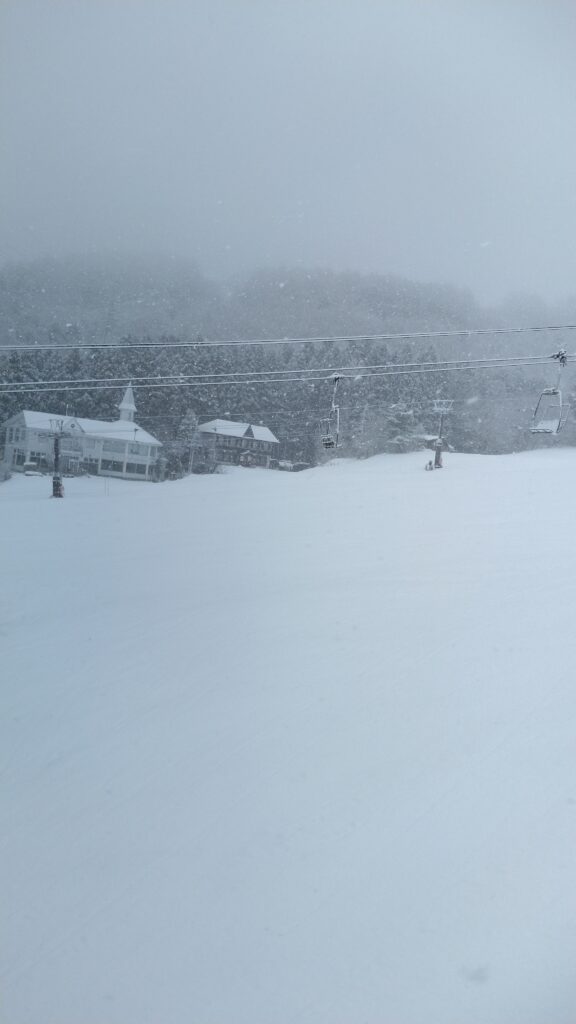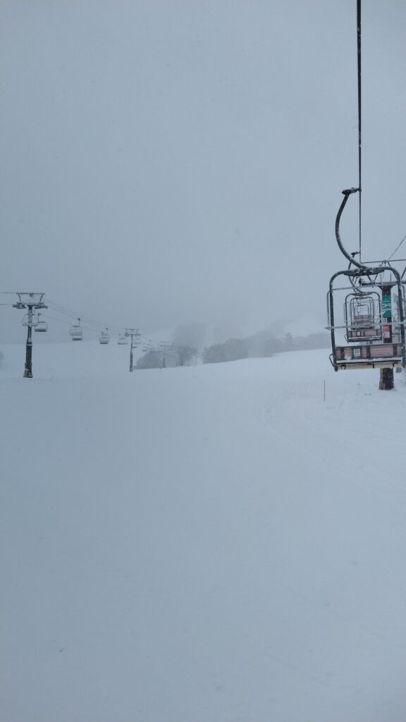 朝からずっと雪が降り続き、空中を舞う無数の雪の結晶が視界を白く染めていました。ゲレンデは真っ白な新雪に覆われ、まるで未踏の雪原のよう。人の姿もまばらで、静寂の中にリフトの音だけが響く、幻想的な風景が広がっていました。